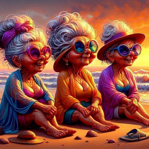 The sun had barely risen over the sleepy coastal town when the three beachside besties, Gloria, Mabel, and Dot, emerged from their cottage wearing matching flamingo-print robes, their hair already sky-high and sprayed into place like some sort of steel wool masterpiece. They had a mission that day. And it didn’t involve knitting, baking, or napping.